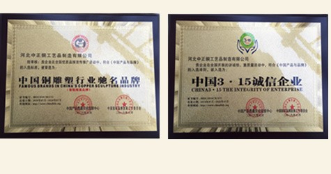 河北中正銅工藝品制造有限公司是一家專業制作鑄銅鐘的廠家,是具有獨立設計、鑄造、制作施工能力的單位。擁有完善的,大型的,先進的銅鐘制作設備,并由多位經驗豐富的高級鑄造技師指導生產及制作。公司主要鑄造銅鐘,青銅鐘,大型銅鐘,寺廟銅鐘,學校銅鐘,鐵鐘等,可按客戶提供銅鐘圖片訂做加工銅鐘,銅鐘做工細致,精雕細琢,鐘聲洪亮,對質量保證,負責。 我廠手續齊全,具有國辦排污許可證,可以正常、環保的制作產品...